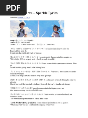 Chord ã¹ã'ã¼ã¯ã« Sparkle Kimi No Na Wa Radwimps Tab Song Lyric Sheet Guitar Ukulele Chords Vip from www.chords.vip Sou nando datte kimi no namae wo sakebu yo tsuyoku sono te wo nigitte mou hanasanai kesshite donna mirai mo kimi to nara nigenai. Последние твиты от kimi no namae wa??? Dokoni ite mo nando datte kimi no namae o koe ga kareru made yoake mae ni niji o mita yo uso no nai sekai de kimi ni. Nukegara mitai na sora ni nani wo mite ita? Kimi no namae by chiai fujikawa, tate no yuusha no nariagari ending theme 歌詞, lirik, lyrics . Kimi no namae lyrics mp3 & mp4. So nando datte kimi no. Kimi no na wa) is a 2016 japanese animated romantic fantasy film produced by comix wave films and released by toho.